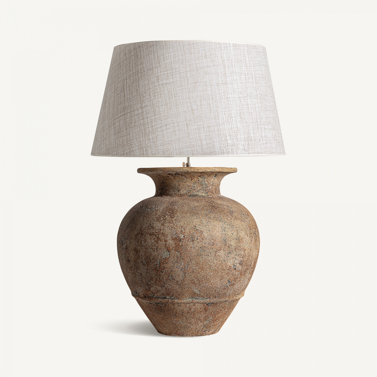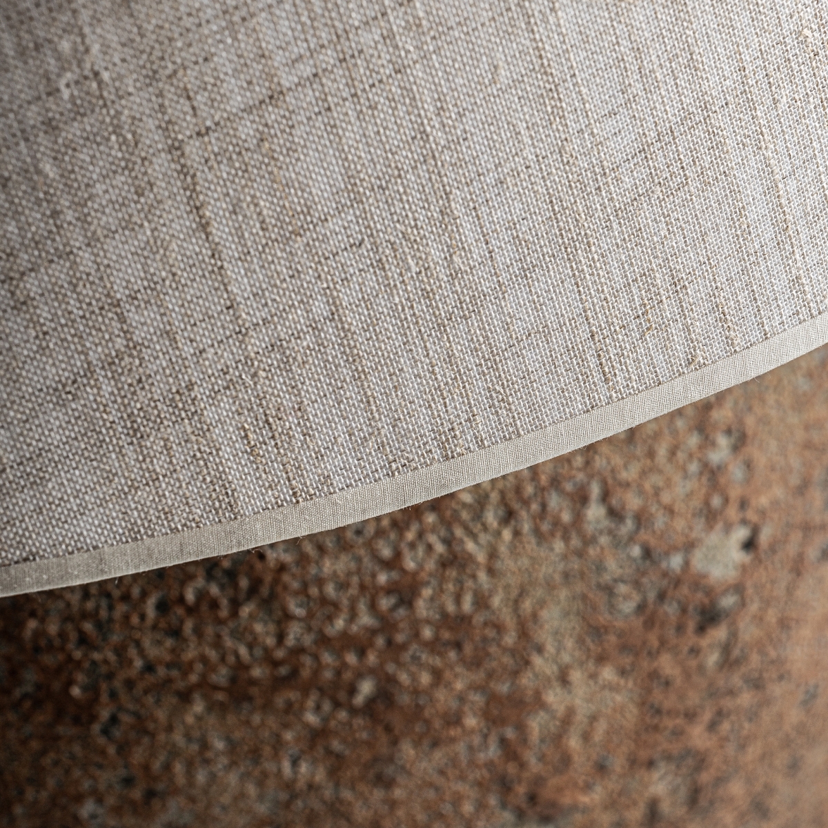 Céramique de couleur nounces marron avec une finition vieilli, combiné avec du coton crème à finition marbré.